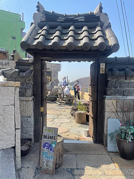 這扇門保留著韓屋的原貌,裡面的平台可以飽覽整個山城彩色小屋全景,「甘川洞文化村」廣告照片應該都是從這邊取景的 ![]()