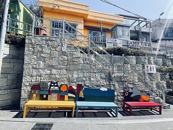 這裡原本是釜山老舊的山上住宅區,由於城市再生工程的推動,用各色彩繪與可愛的造景為村落增添了藝文氣息,使這裡搖身一變,成為釜山著名觀光景點。