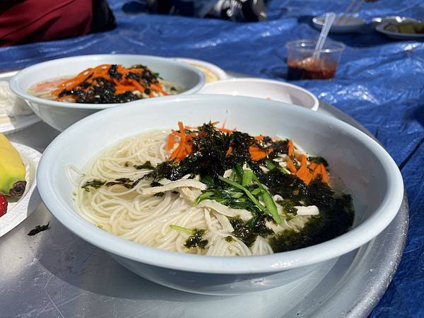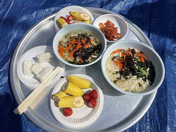 齋麵營養豐富加上村民自製的辣醬 ,好大一碗吃過精光,還有泡菜、糕點、水果,還送給我們一整包濕紙巾,真的太有愛了 !!!![]()
